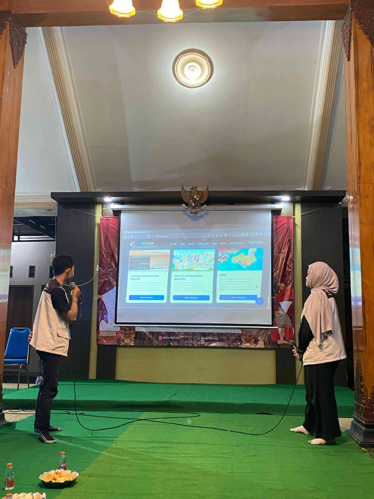 Pada sesi berikutnya, Kelompok KKM Aruna mendemonstrasikan website SIMANTAP, sebuah platform digital yang dirancang khusus untuk warga Desa Wonorejo, Kecamatan Poncokusumo. Website ini dikembangkan sebagai pusat informasi dan dokumentasi kegiatan desa yang mudah diakses oleh masyarakat. SIMANTAP memiliki berbagai menu utama, di antaranya Beranda sebagai tampilan awal informasi, Acara yang memuat agenda dan kegiatan desa, serta Sejarah yang mengulas perjalanan dan identitas Desa Wonorejo.